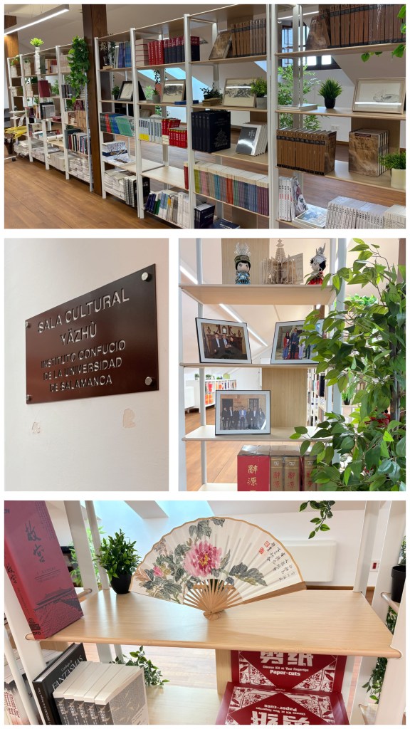 En adición a los recursos bibliográficos sobre estudios chinos, localizados en su mayoría en la Biblioteca de la Facultad de Filología, la Universidad de Salamanca cuenta con un Instituto Confucio. Entre sus espacios, el instituto tiene la sala cultural Yazhu, que cuenta con materiales bibliográficos y se ubica en la fonda Veracruz.